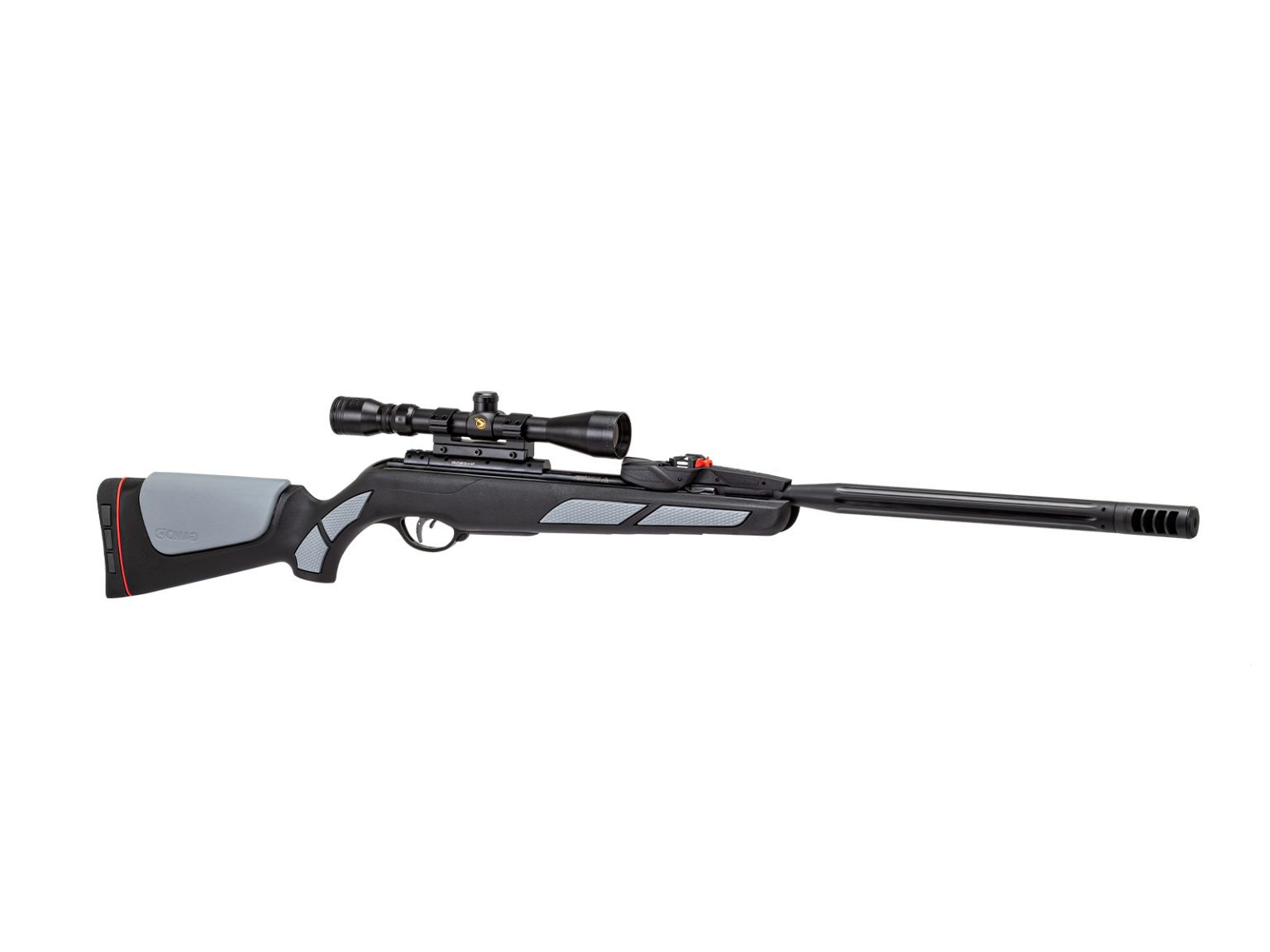 Carabine à air comprimé Gamo, crosse ergonomique avec inserts gris antidérapants.