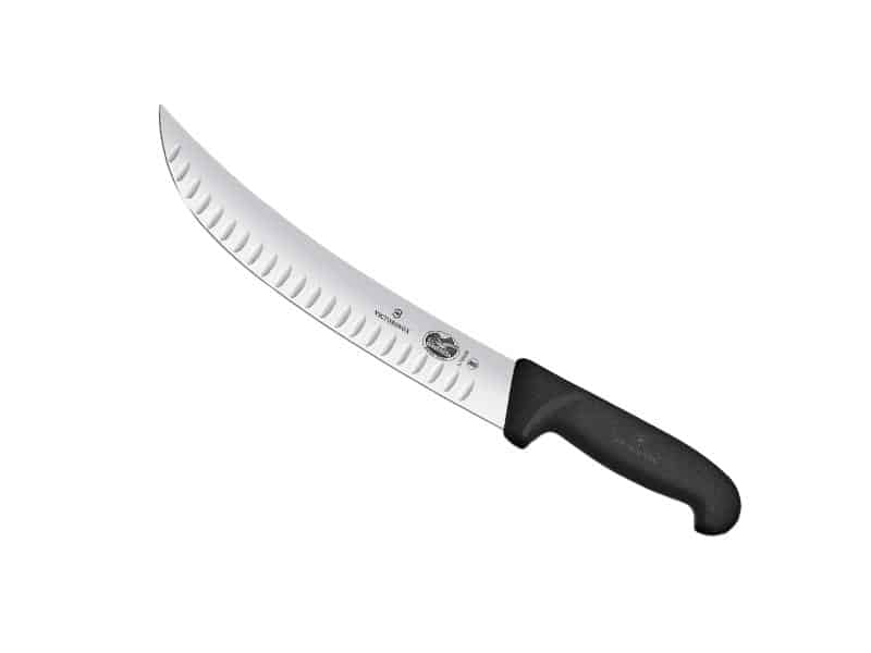 Couteau abattre/boucher, lame alvéolée 31 cm inox, dos renversé, manche fibrox noir.
