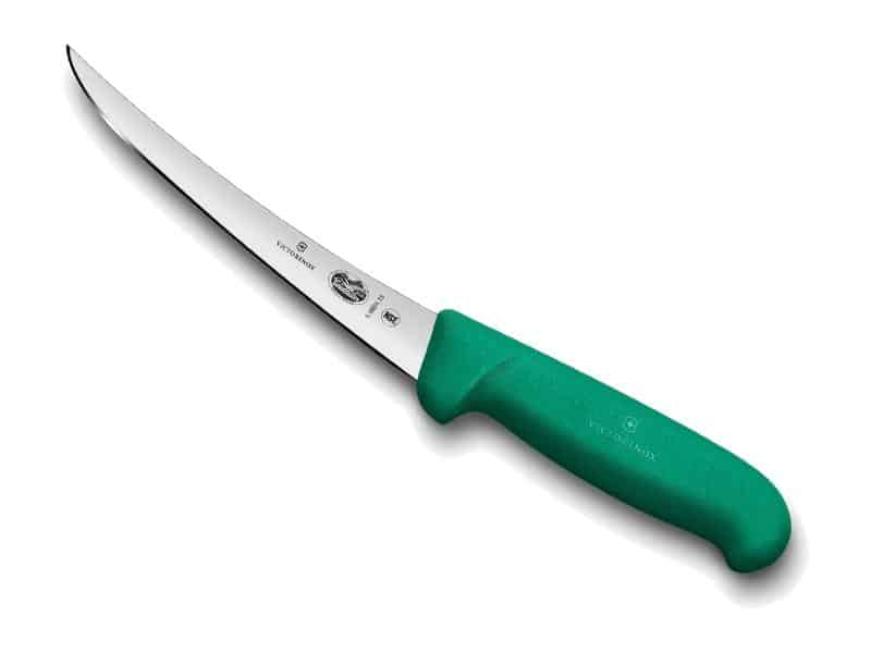 Couteau désosser, manche fibrox vert, lame dos renversé étroite, 15 cm inox.