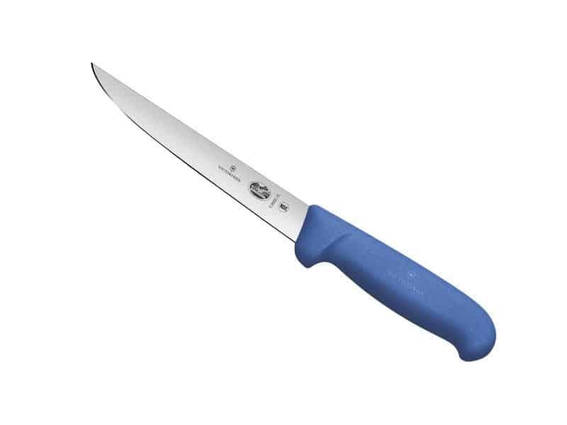 Couteau saigner/découper, lame 15 cm inox, dos droit, manche fibrox rouge.
