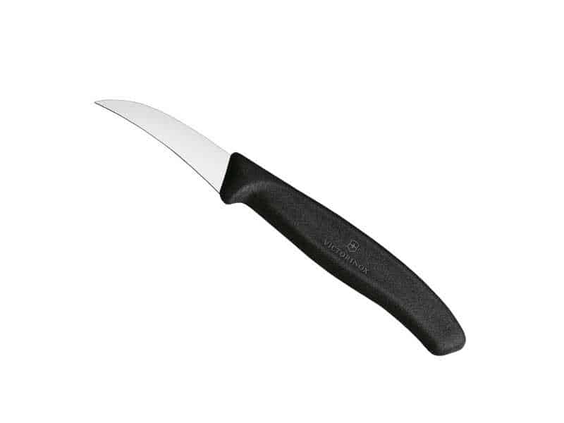 Couteau office, lame crantée 8 cm inox, pointe rabattue, manche polypropylène noir.